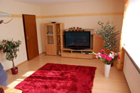 - ein geräumiges Wohnzimmer mit ausziehbarer Rundecke, Wohnwand mit 50” Plasma -TV, Sidebord mit Hifi - Anlage ,