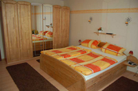 - ein Schlafzimmer mit Doppelbett, großem Kleiderschrank und einem 22“ LCD Fernseher,