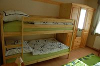 - ein Kinderzimmer mit einem Etagenbett und einem Einzelbett,